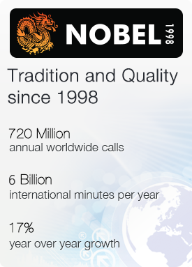 Nobel is a global leader in connecting calls and funds by providing global services to accommodate a complete palette of global needs. Founded in 1998 by Thomas C. Knobel, the company has grown rapidly. Being the first brand to tackle the online prepaid phone cards market with NobelCom.com, Nobel is now offering a variety of telecommunication services, including the online selling of prepaid virtual phone cards worldwide, physical distribution of phone cards in the US, postpaid and superior carrier services through its PoPs in Los Angeles, New York, Toronto, Frankfurt, Hong Kong and Bucharest.